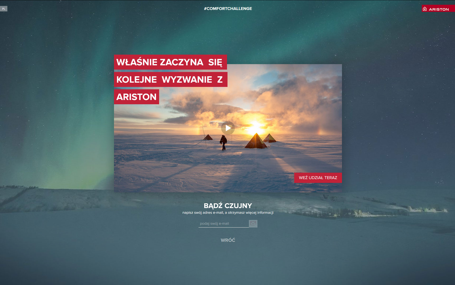 Dziś komfort ma różne znaczenia dla każdego z nas. Zapewnienie komfortu i możliwość czerpania z niego korzyści jest ambitnym celem, który zainspirował Ariston do badań nad jego uzyskaniem i utrzymaniem. W związku z tym Ariston poszukuje trzech odważnych profesjonalistów, którzy będą w stanie sprostać wyzwaniu #comfortchallenge. Rekrutacja instalatorów z całego świata właśnie ruszyła na stronie aristoncomfortchallenge.com. Teraz sam możesz przyczynić się do poprawy komfortu w ekstremalnie odległej, nieprzewidywalnej i mroźnej krainie.