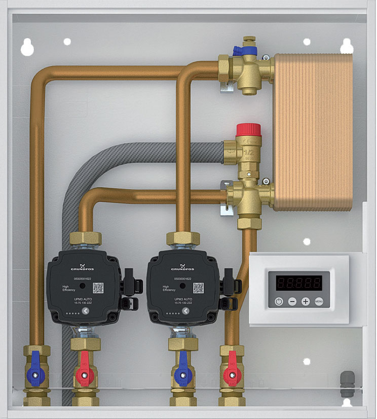 Różne warianty wykonania na pewno będą bardzo pomocne w kwestii łączenia ze sobą dwóch różnych systemów ogrzewania. PrimoBox zbudowany jest na bazie bardzo wydajnego wymiennika płytowego o mocy 35 kW. W zależności od wariantu wykonania może posiadać wysokiej jakości pompę obiegową dla każdego systemu oraz zawór temperaturowy do ochrony powrotu. Wszystko umieszczone jest w zgrabnej metalowej szafce, do której pozostaje podłączyć przewody zasilające i powrotne łączonych systemów. I gotowe. Dzięki jednemu kompaktowemu urządzeniu jesteśmy w stanie w sposób bezpieczny dla użytkowników oraz reszty urządzeń będących w instalacji podłączyć kominek i korzystać z ciepła jakie wytwarza. Wiedząc, że jesteśmy bezpieczni możemy oddawać się przyjemności wpatrywania w magiczny płomień ognia.