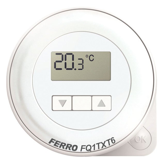 Fot. 5. Dobowy regulator elektroniczny, bezprzewodowy. Przewidziany do pracy w instalacjach grzewczych i klimatyzacyjnych. Cechuje go proste i wygodne ustawianie temperatury. Posiada innowacyjną funkcję automatycznego zapamiętywania dwóch nastaw dobowych. Fot. FERRO